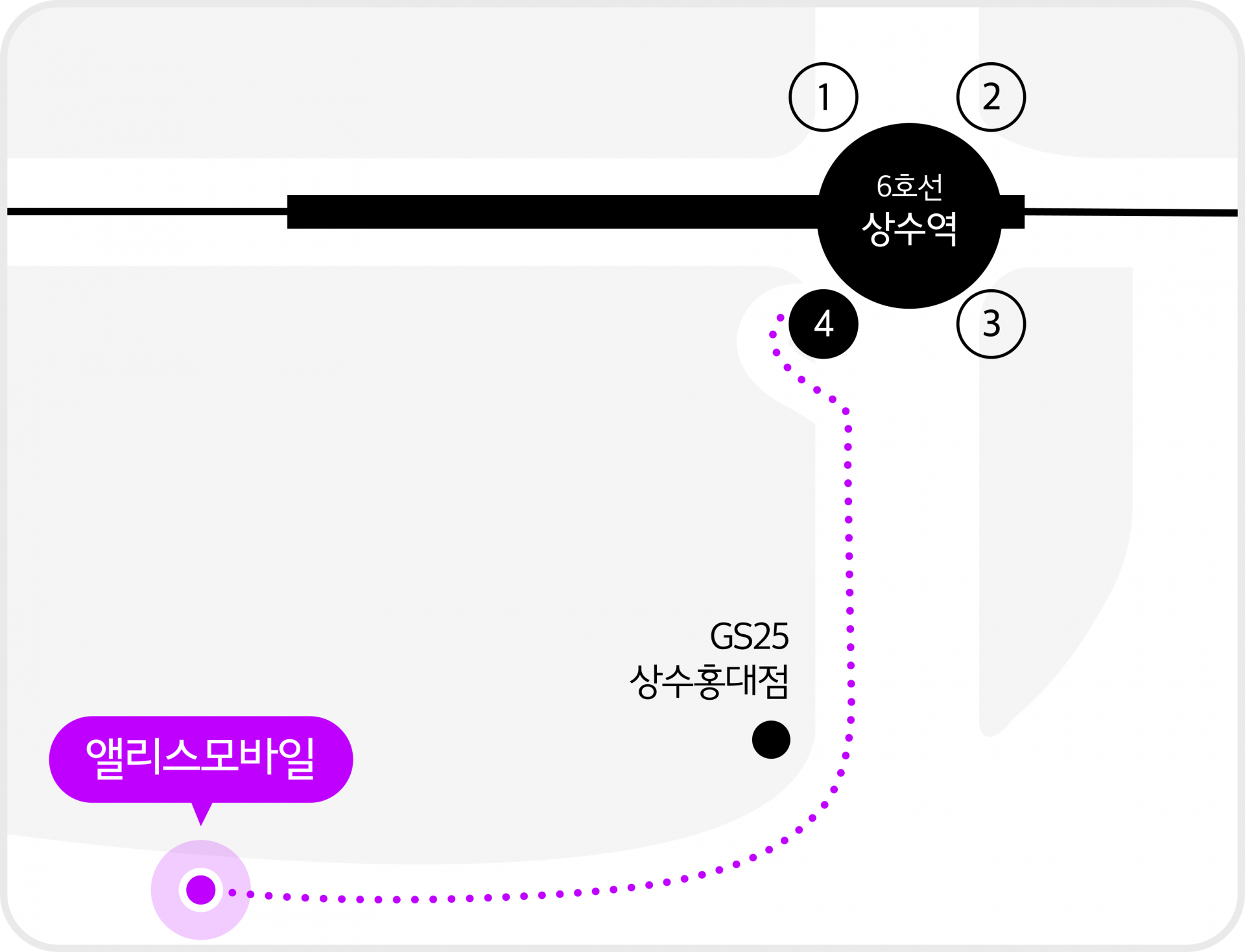 GS25 상수홍대점이 나올 때까지 걸어주세요.