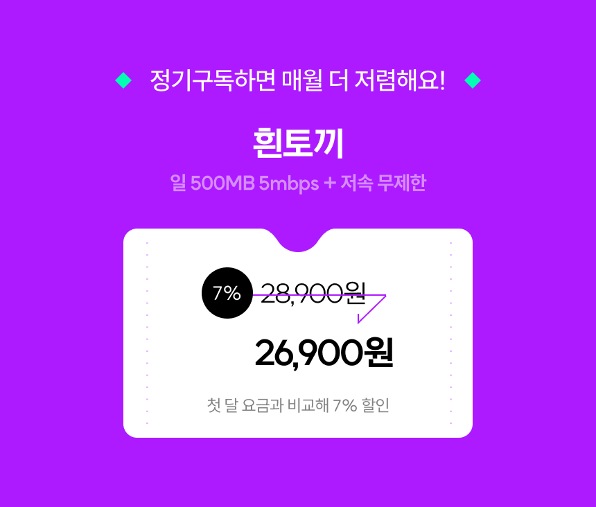 연장특가★[정기구독] 하루 500MB + 저속 무제한