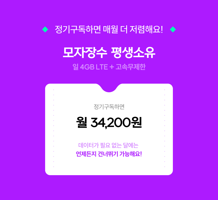 데이터를 사용하지 않으실 달에는 결제를 건너뛰기 해주세요!